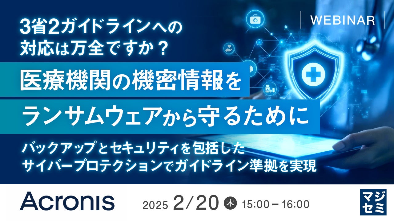 マジセミ株式会社は「3省2ガイドラインへの対応は万全ですか?医療機関の機密情報をランサムウェアから守るために」というテーマのウェビナーを開催します。