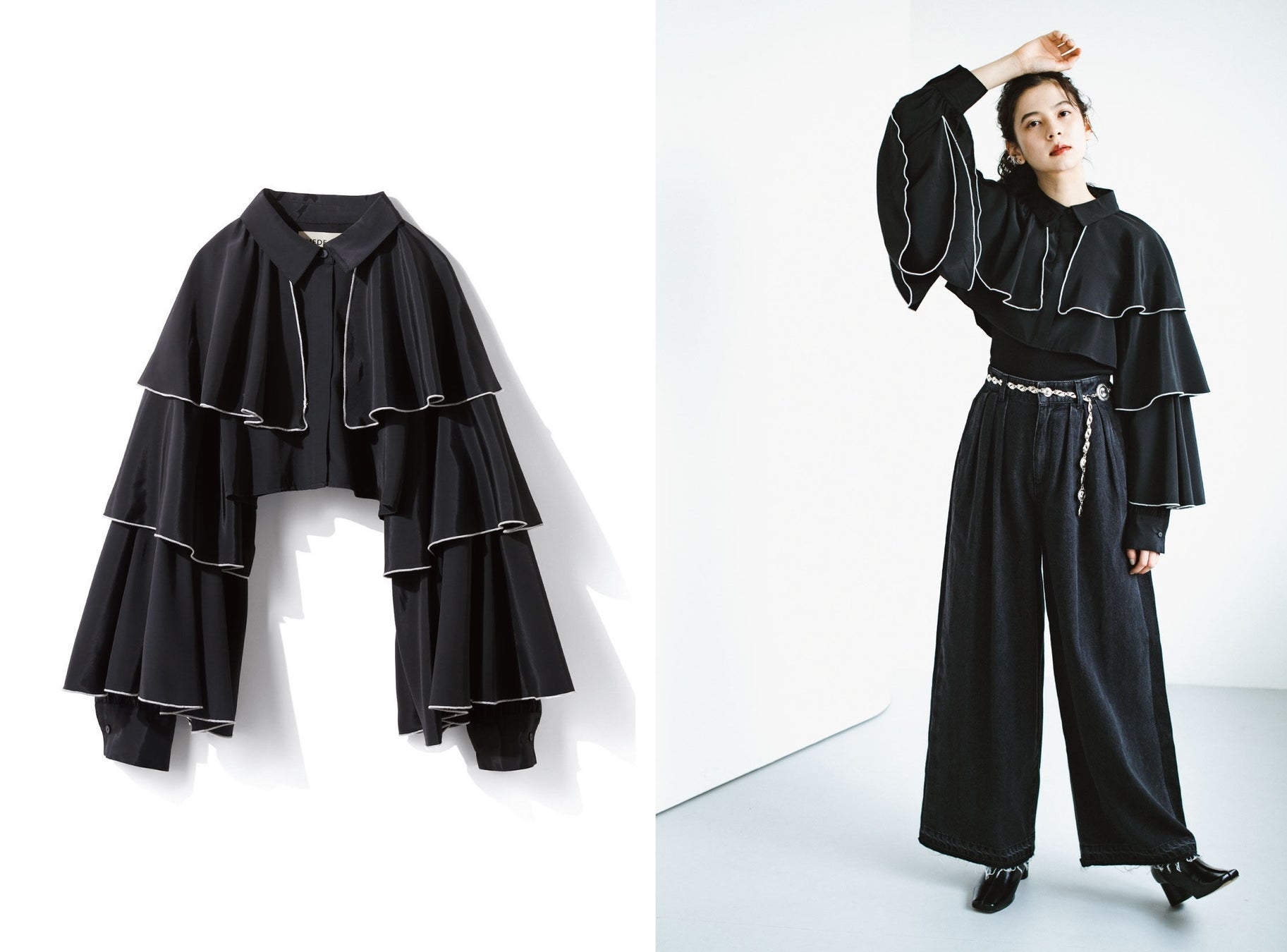 【NEW】MEDE19F×SCREEN KAORI フリルショートシャツ〈ブラック〉