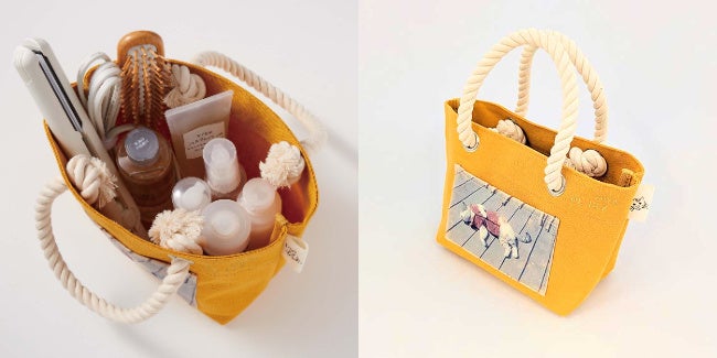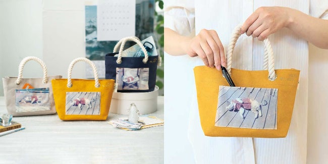 ロープの持ち手や帆布の生地、マリンテイストなフォルムがかわいいトートバッグです。南極観測船「宗谷」をイメージした底まちがたっぷりの「舟形」デザインで、フロントのポケットには「宗谷」の甲板でくつろぐたけしの写真がプリントされています。インテリアとして部屋に置いても楽しめそうです。デザインは〈イエロー〉〈グレー〉〈ネイビー〉の3種類です。