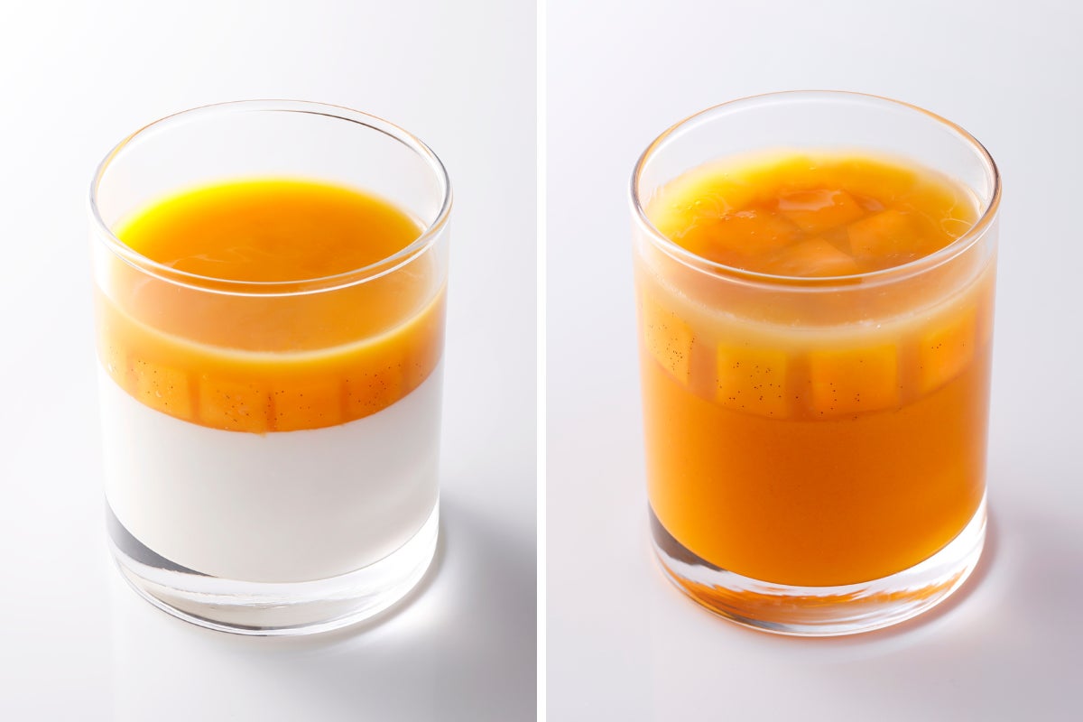 岩手県産の岩泉(いわいずみ)ヨーグルトを使用したゼリーに、甘酸っぱいパッションフルーツとマンゴーの濃厚なジュレをトッピングした『岩泉ヨーグルトゼリー』や、フレッシュなパッションフルーツピューレが入ったマンゴーゼリーに、葛をまとった甘みのあるマンゴーを凝縮した『マンゴーゼリー』も登場。爽快感広がる滑らかな口当たりが、この季節ぴったりなグラススイーツです。