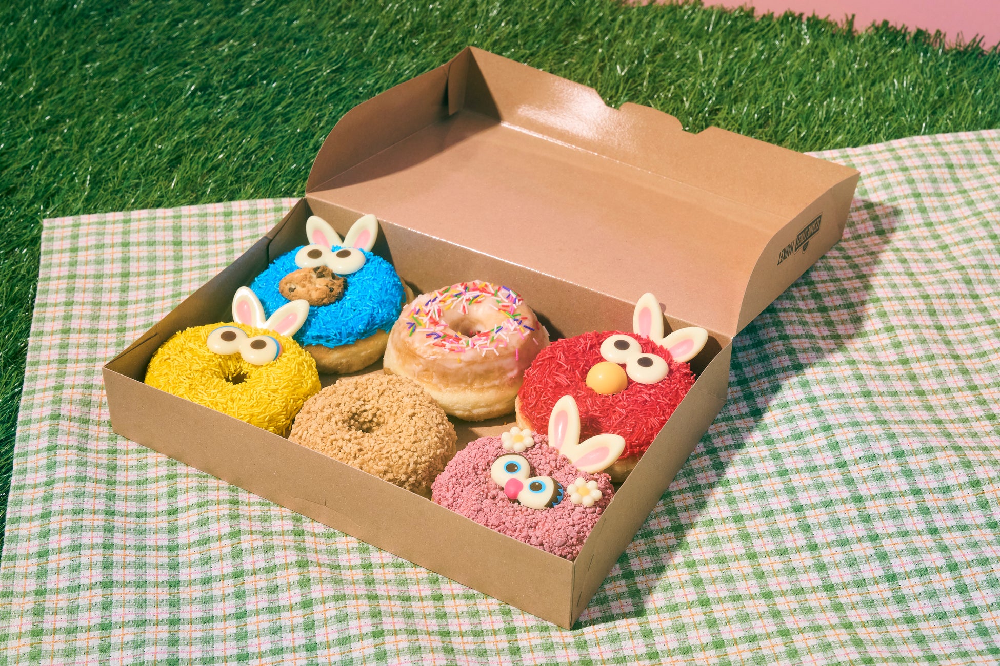バニードーナツがぎゅっと集合した姿は、セサミストリートの仲間たちが春を楽しんでいるようで心躍ります。