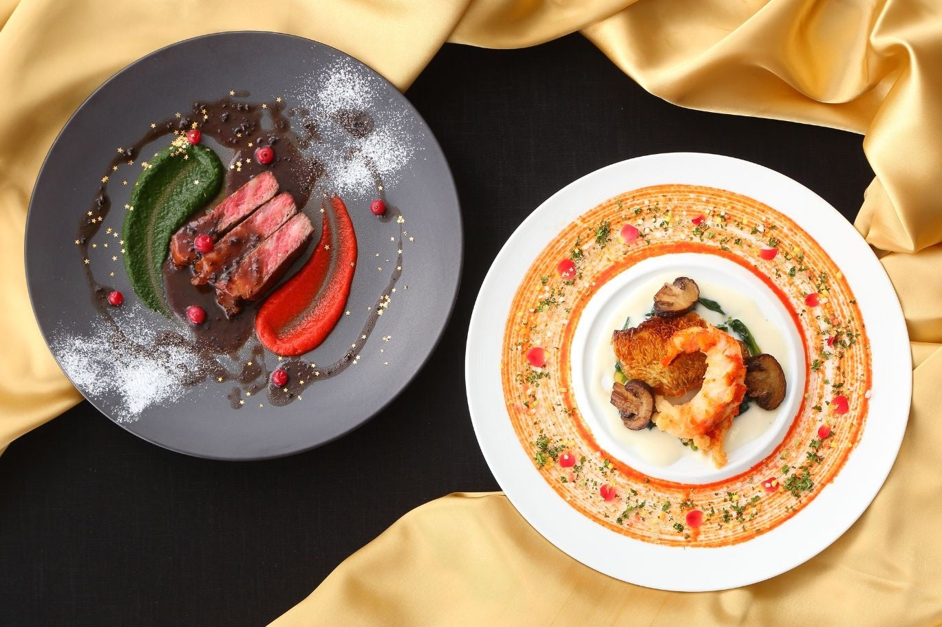 ②ブッフェ+メインディッシュ(国産牛のステーキ トリュフソースor甘鯛とオマール海老の白ワインソース)+フリーフロー