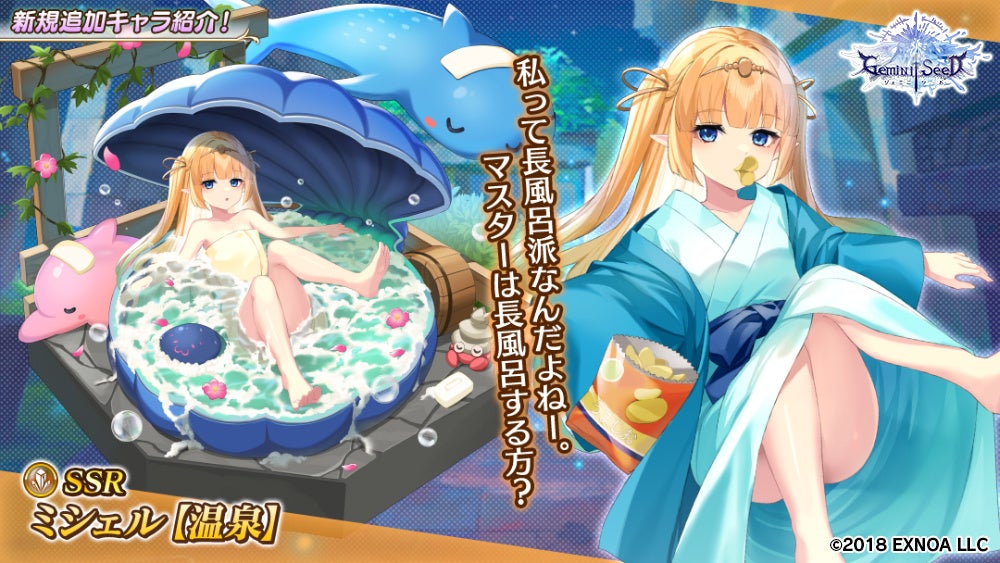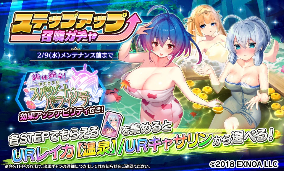 「冥霊石ステップアップ召喚ガチャ」「DMMポイントステップアップ召喚ガチャ」では、STEP3とSTEP5で新SSRユニット「SSR ミシェル【温泉】」が1体確定となっております。
