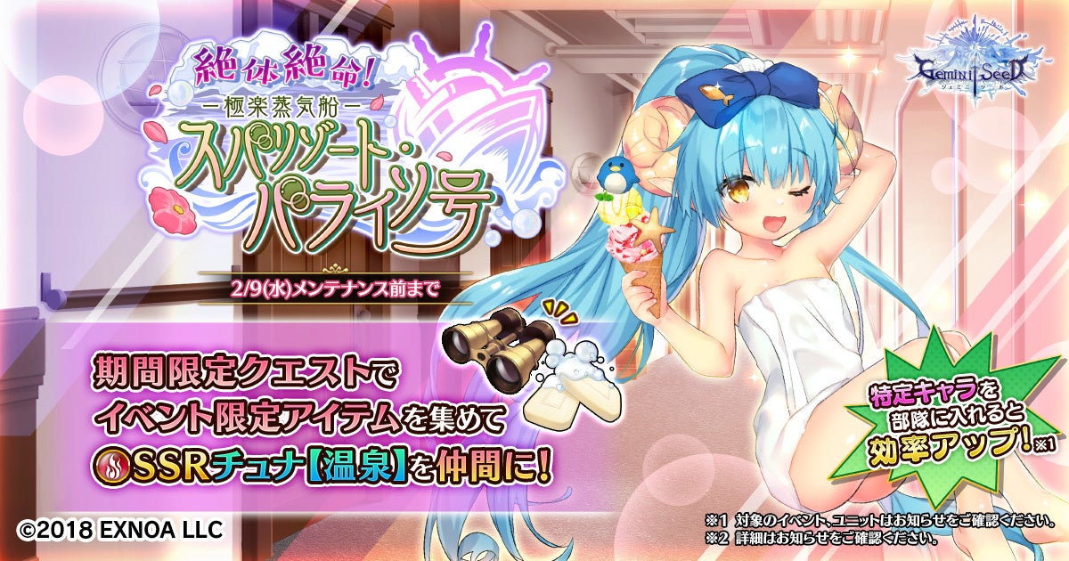 DMM GAMESタクティカルメダルバトルRPG【Gemini Seed】本日1月26日より期間限定イベント「絶体絶命!極楽蒸気船スパリゾート・パライソ号」開始!