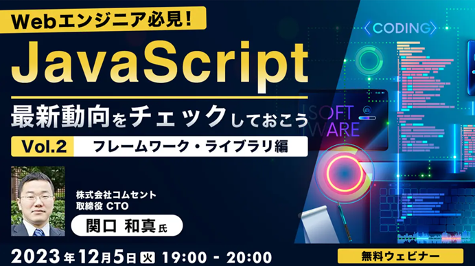 【Web制作者向け】これは見逃せない!JavaScriptの役立つ情報が満載!12/5(火)無料セミナー「Webエンジニア必見!JavaScript最新動向をチェックしておこう Vol.2」