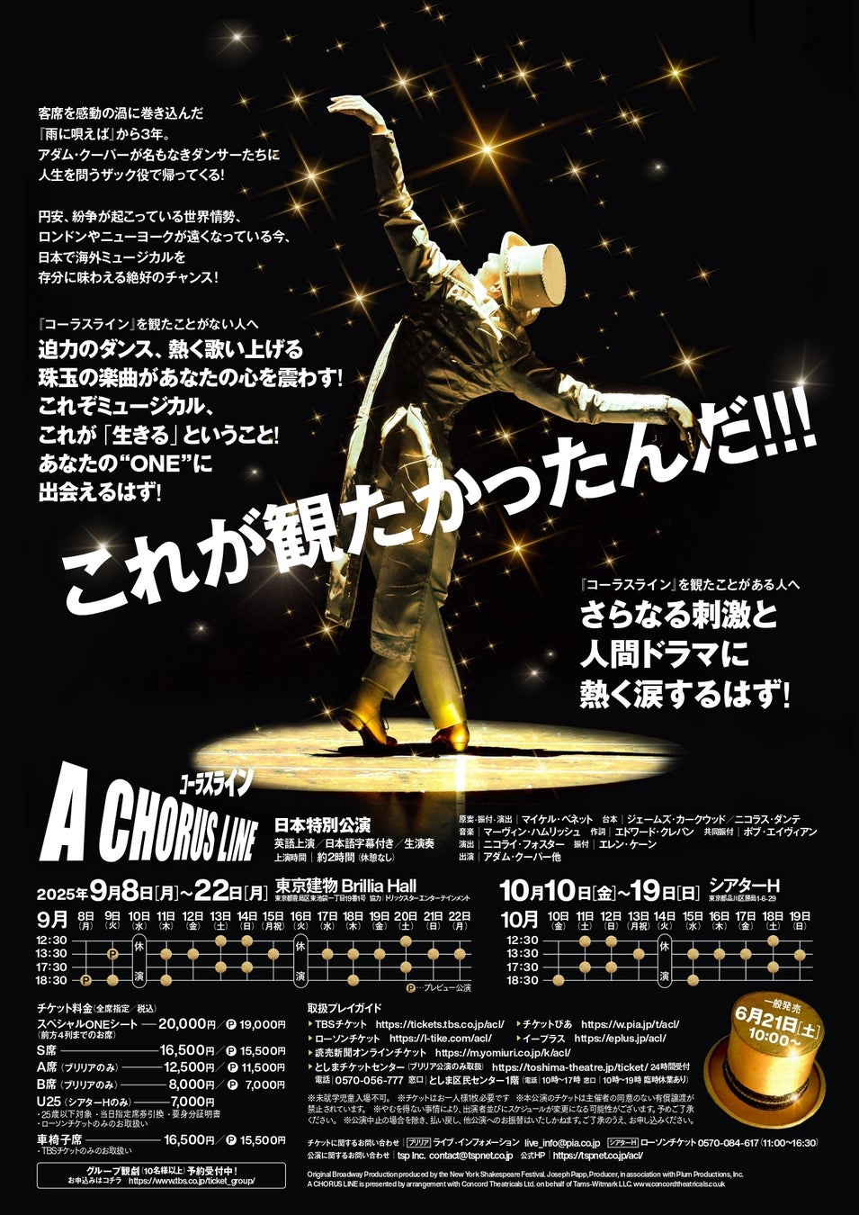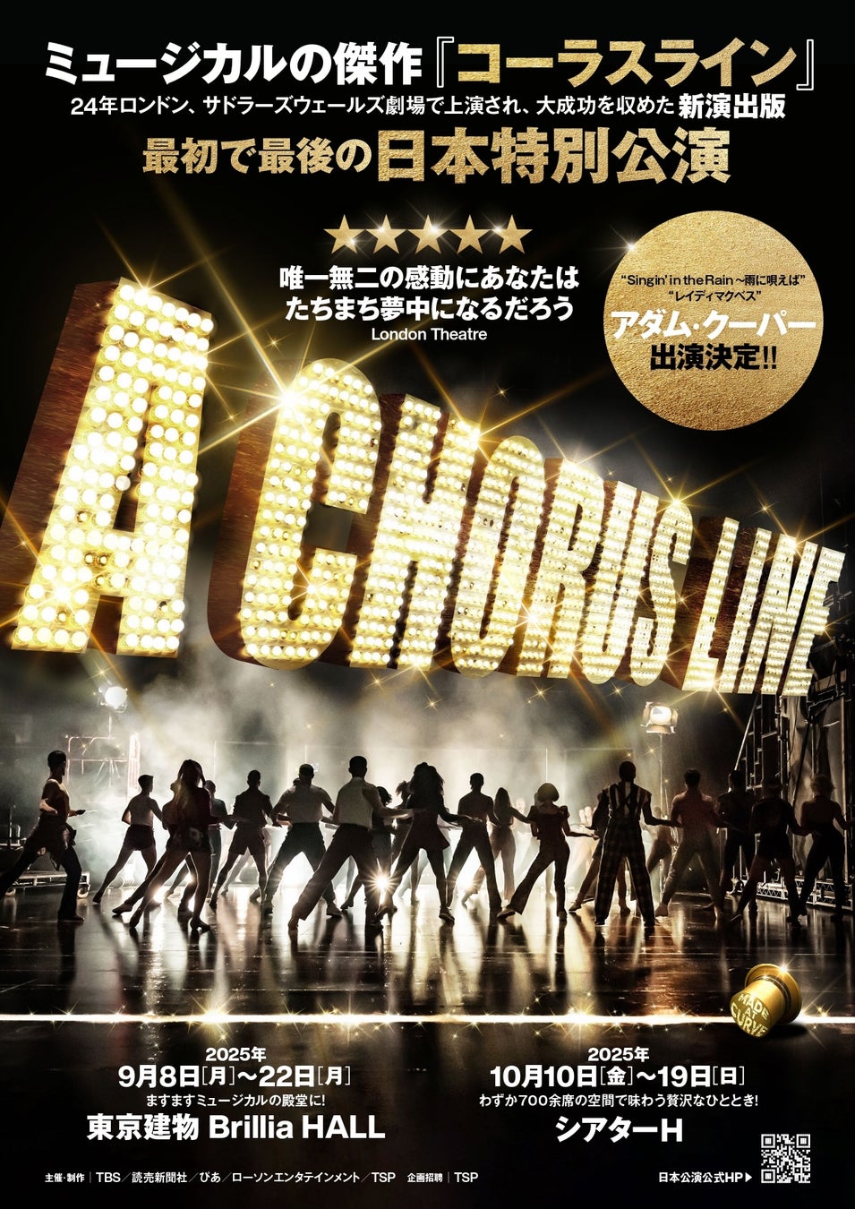 2022年『Singin' in the Rain〜雨に唄えば』で奇跡の来日を果たして以来の第二弾、アダム・クーパー率いるジョナサン・チャーチ・プロダクションによる、ミュージカル『コーラスライン』!!