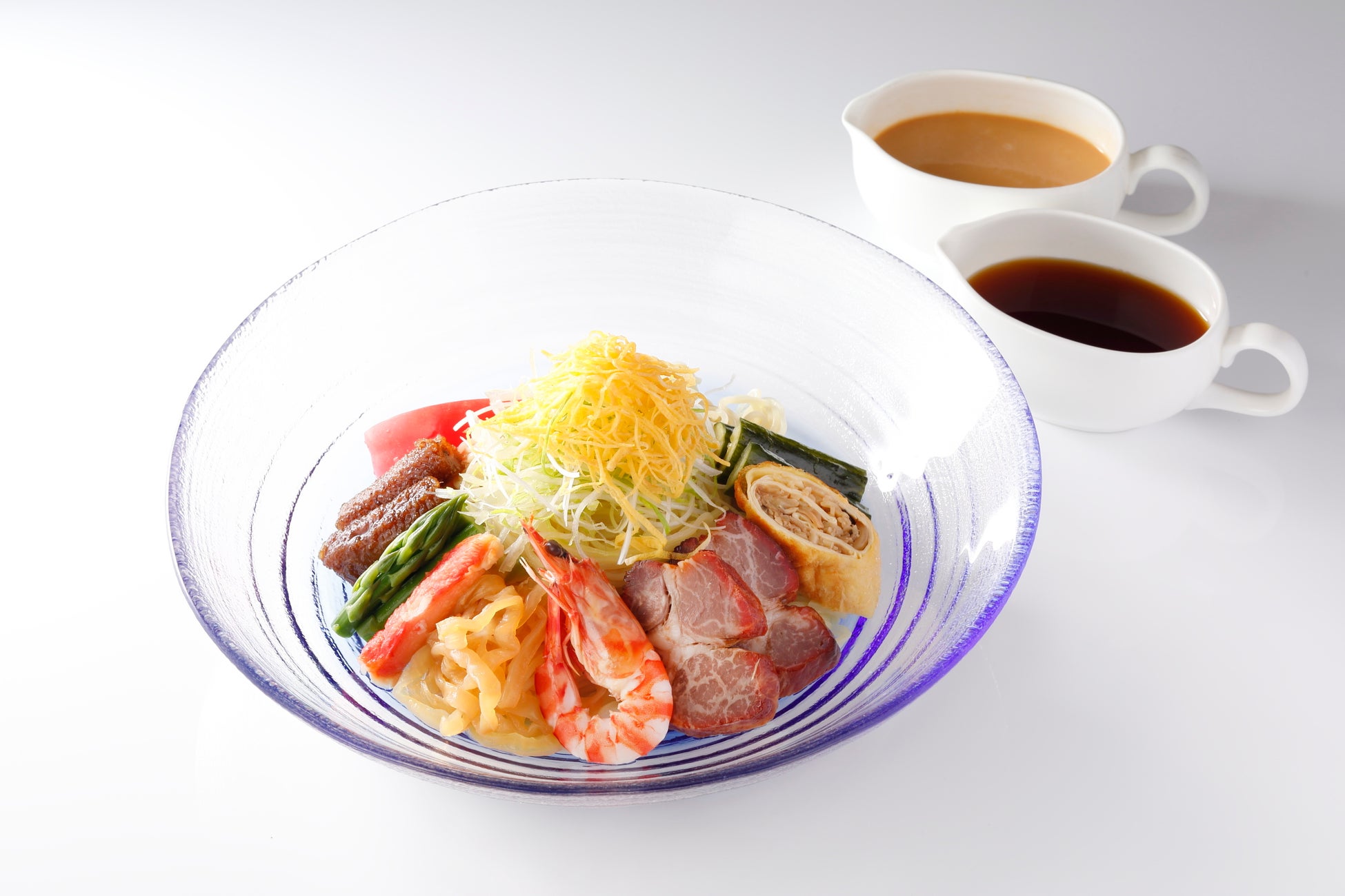 『五目冷麺』は、大観苑の“夏の風物詩”。オープンキッチンの窯でじっくりと焼き上げた叉焼(チャーシュー)をはじめ、クラゲの冷菜や巻き海老などたっぷりの具材が人気の王道冷麺。刺激ある味が好みなら『ブラック冷やし担々麺(Jシリアル麺使用)』がおすすめ。黒ゴマベースのブラックスープに山椒のピリリとした辛さがアクセントで、麺にはホテルオリジナルブレンドの雑穀米『Jシリアル』を練り込んだ逸品。今年の夏は、定番メニューを愉しむのはもちろん、ラグジュアリーや刺激的な麺料理で涼を呼び込むのはいかがでしょう。