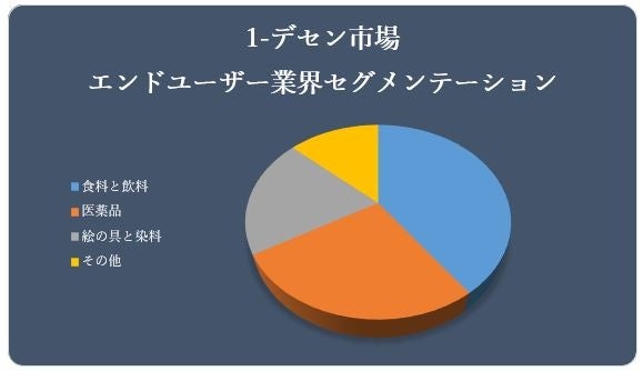 エンドユーザー産業に基づいて、1-デセン市場は食品および飲料、医薬品、塗料および染料などに分割されます。これらのうち、食品および飲料セグメントは、2035 年までに最高の市場シェアを獲得すると予想されています。 セグメントの成長に寄与する要因は、急増する人口による食品および飲料製品の大量消費と、食品添加物としての 1-デセンの使用の増加です。 2021 年には、食品製造の売上高は世界中でほぼ 1,200 億米ドルに達し、安定した速度で増加すると予測されています。