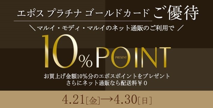 マルイのネット通販「マルイウェブチャネル」および、マルイ・モディ全店にて「エポスプラチナ・ゴールドカードご優待『10%ポイントプレゼント10DAYS』開催!