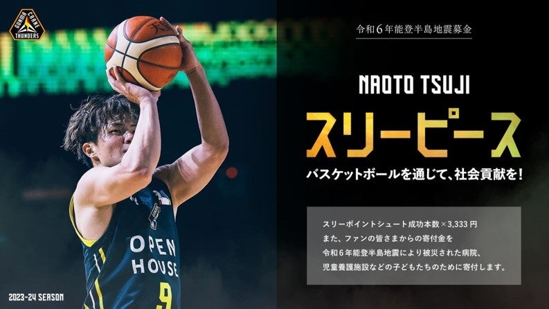 辻󠄀選手とは、その十分なキャリアと持前のキャラクターを活かし、さらなるバスケットボール界の発展のため、メディア・イベント出演、SNSなどの発信をより積極的に取り組んでいくとともに、すでに辻󠄀選手が精力的に取り組まれている児童養護施設などの子どもたちや被災地への支援などを行う社会貢献活動「スリーピース」に関してもサポートしてまいります。