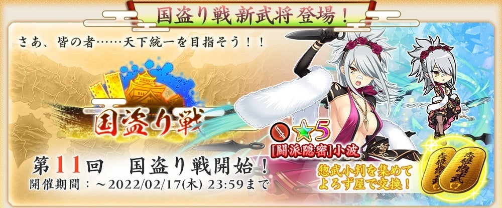 ▼『第11回 国盗り戦 開催中!』新武将 小波登場!!