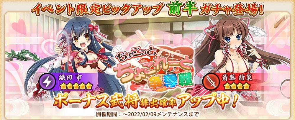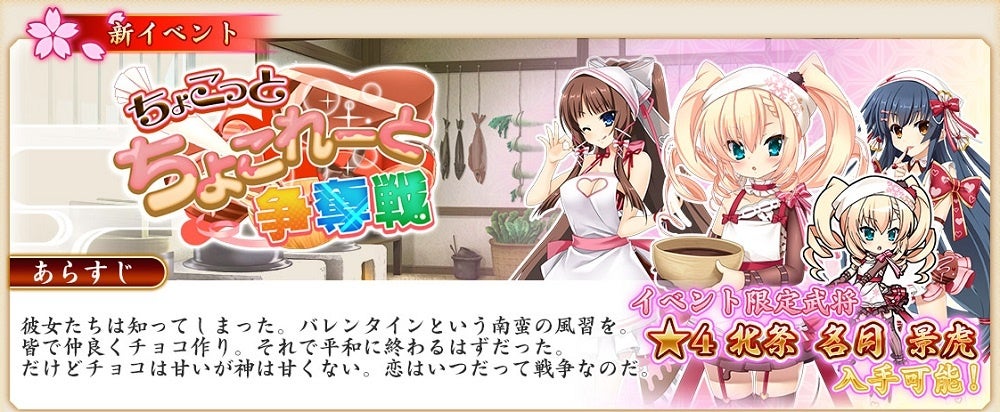 1月28日(金)より、『戦国†恋姫オンライン ~奥宴新史~』にてバレンタインイベント『ちょこっとちょこれーと争奪戦』を開催いたします!