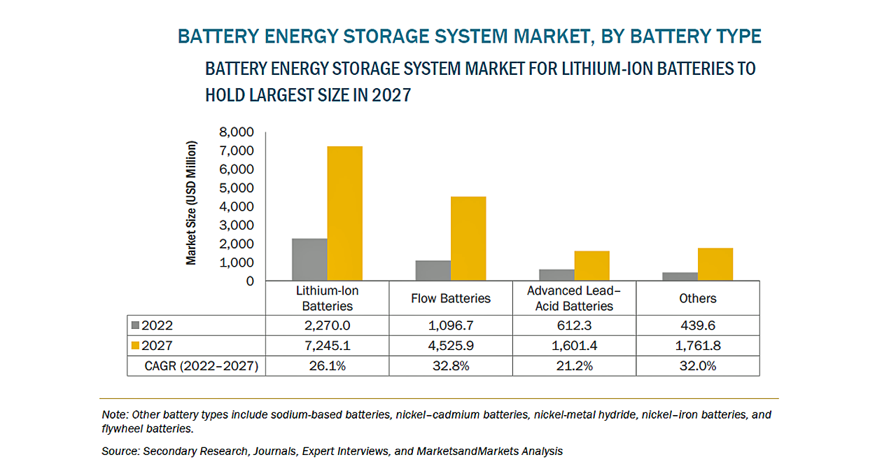 バッテリーエネルギー貯蔵システムの市場規模、2027年に151億米ドル到達予測