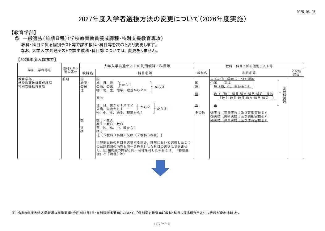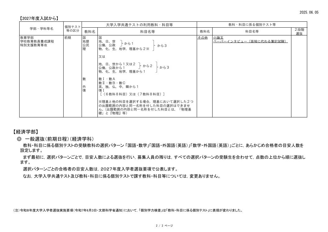 〇2027年度岡山大学入学者選抜方法の変更について(2026年度実施)