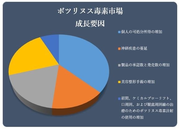 ボツリヌス毒素市場の成長を牽引する主な要因は次のとおりです。