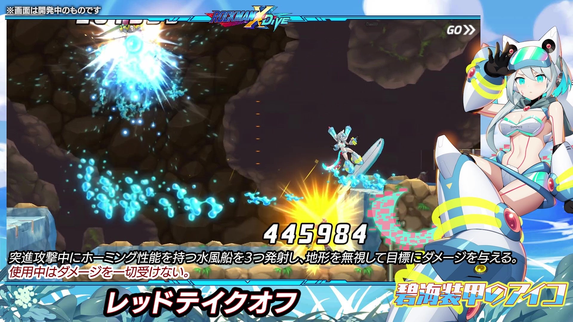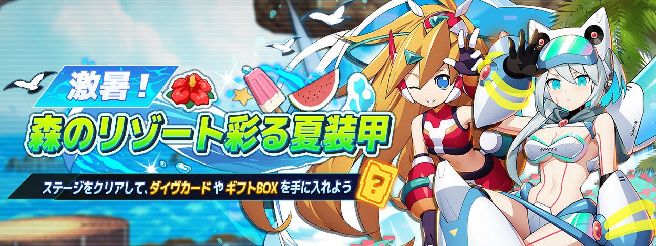 iOS/Android用ゲームアプリ『ロックマンX DiVE』では、本日7月13日(水)より、「碧海装甲のアイコ」が新登場&ピックアップされた「DiVEサマーフェス2022」カプセル、イベントステージ「激暑!森のリゾート彩る夏装甲」を開催します。