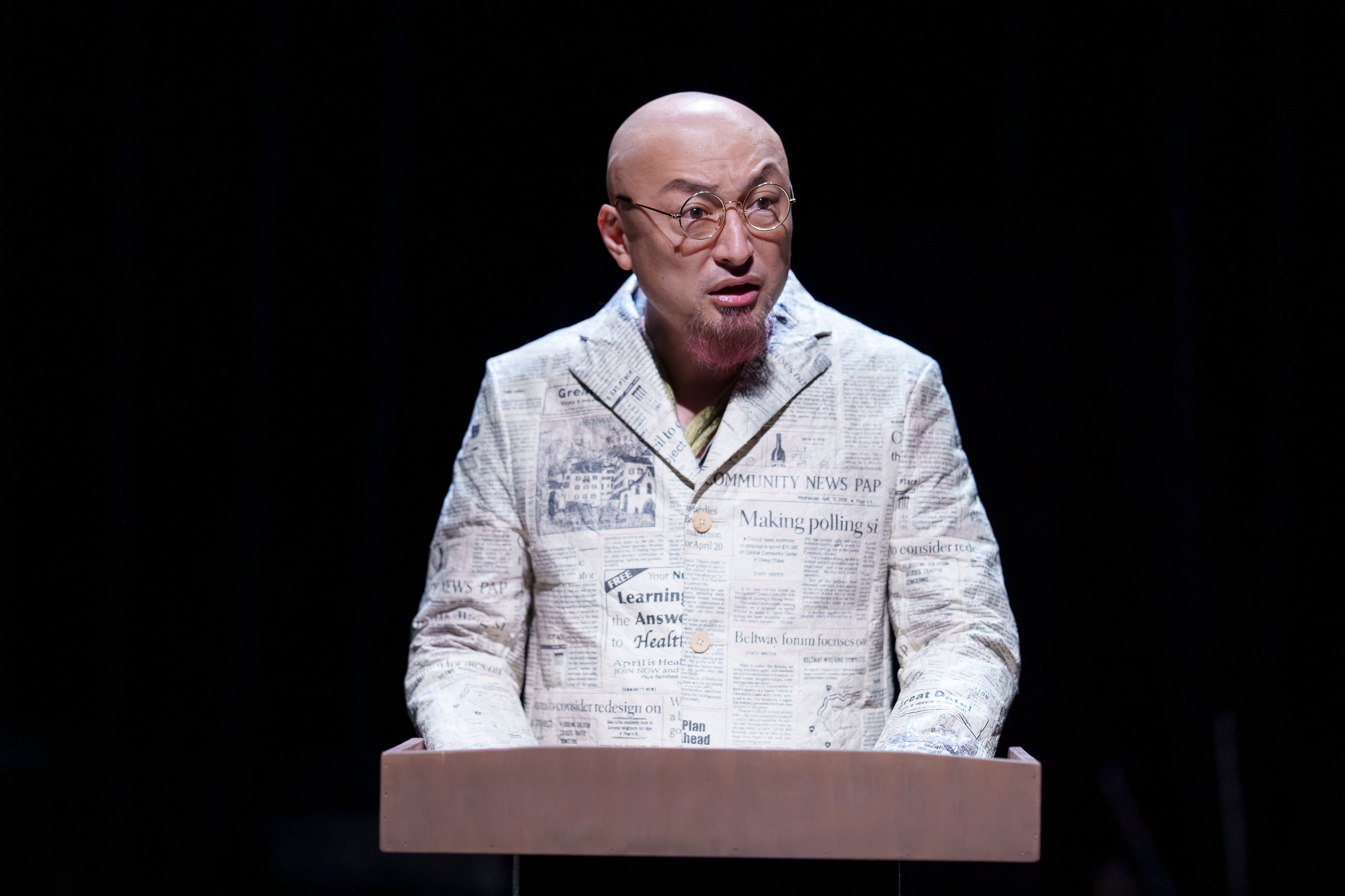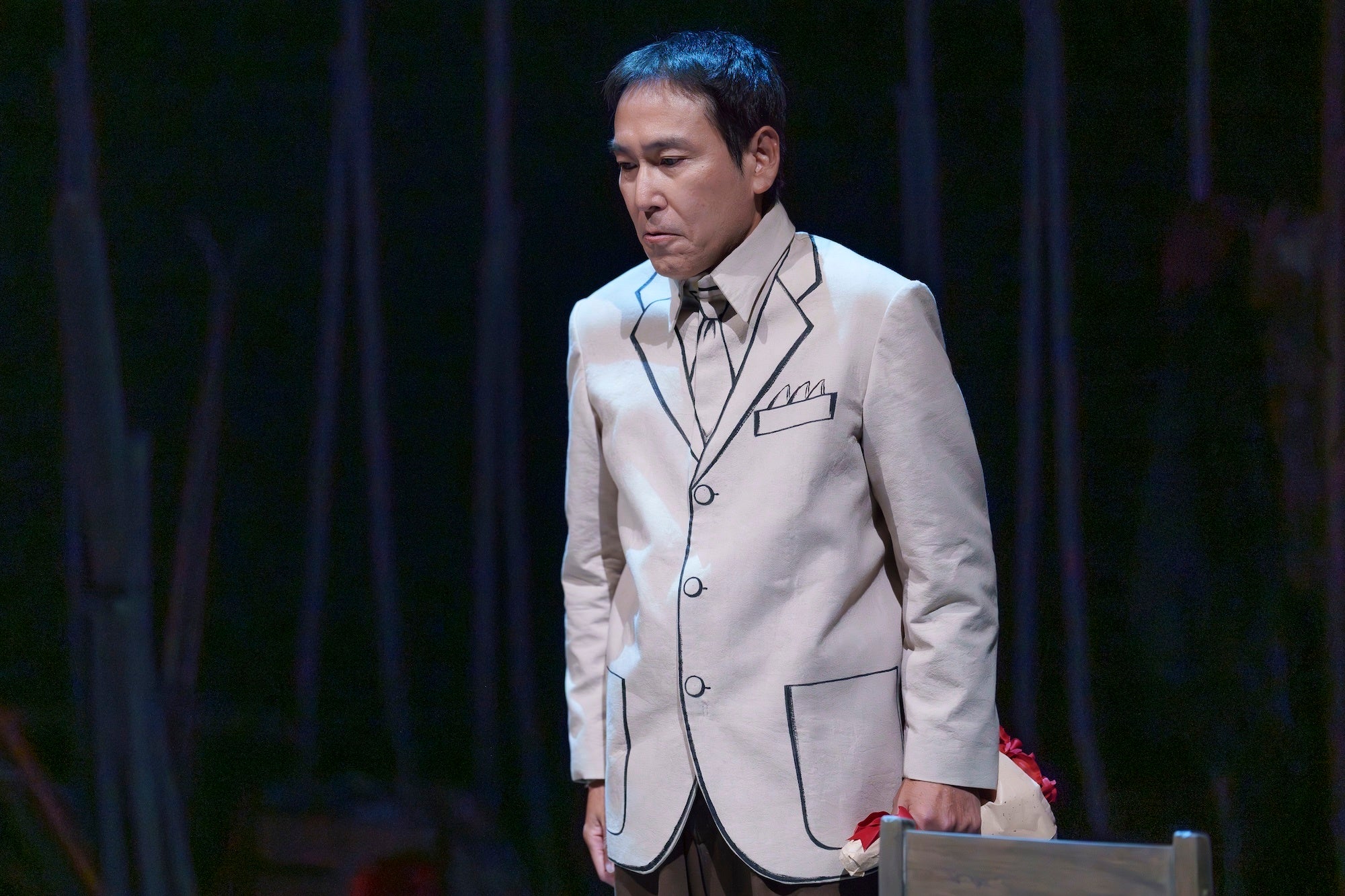 また、『煙草の害について』での山内による一人芝居も圧巻でした。恐妻家のある男が「煙草の害について」の講演を行うことになりますが、話がどんどん逸れて、いつの間にか妻の悪口に…という物語ですが、山内はステージ中央の講演台から離れることなく、言葉だけで男の置かれた状況を見事に表現し、笑いを生み出していました。山内の演技力が光る物語となっています。