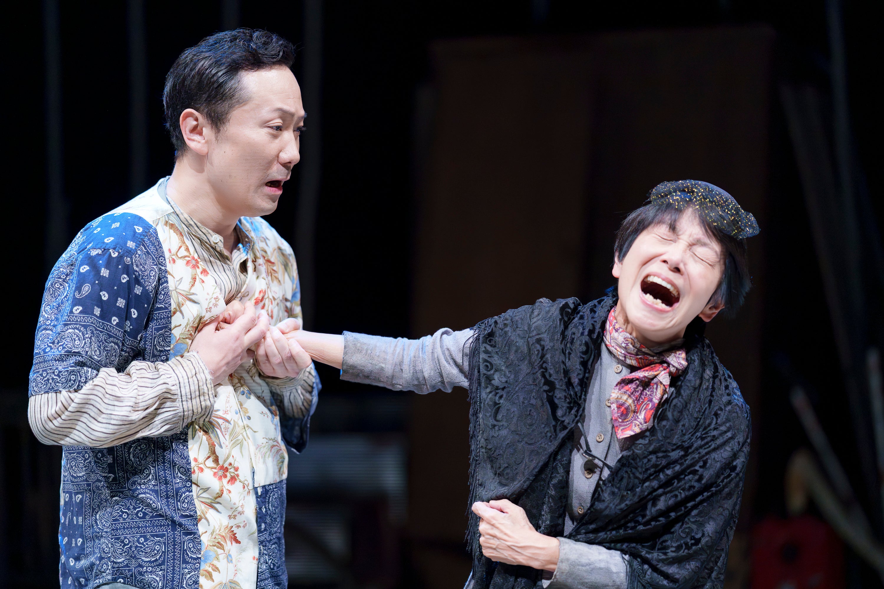 どの物語も設定や大筋はチェーホフの作品をなぞっているものの、登場するエピソードの数々が身近な内容になっているため、非常に親しみやすいものになっていました。例えば『結婚申込』は、チェーホフが書いた戯曲では所有地にまつわる口論が行われるところを、本作では「隣家との境界線に植えられていた柿の木はどちらの家のものか」という言い争いに変換されています。さもありなんな展開にゲネプロでも笑い声が響きました。