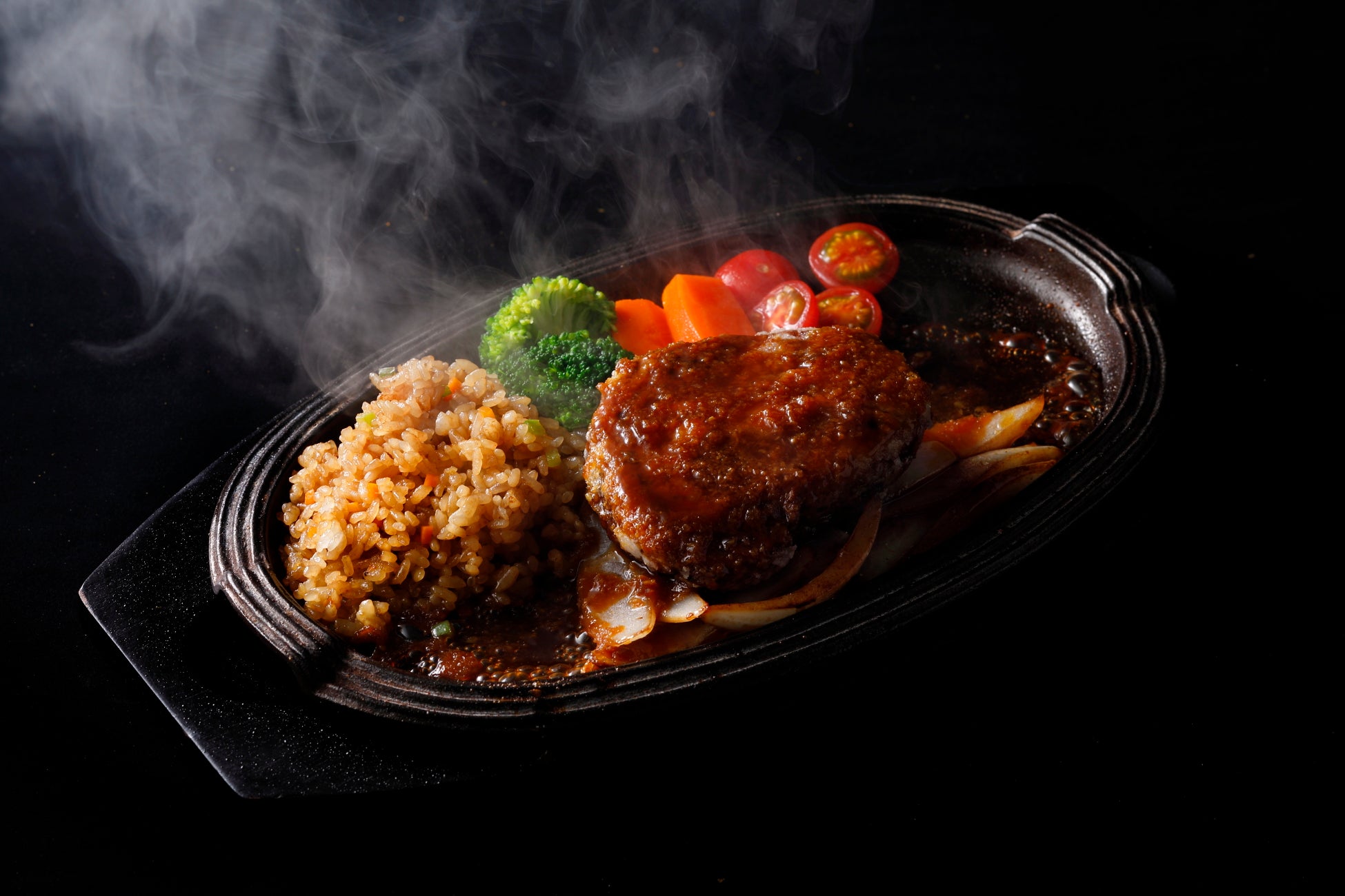 『カイマナ風ステーキ ガーリックバターライス』は、香ばしく揚げ焼きにした国産牛ガーリックライスと、生姜風味の甘じょっぱいソースがアツアツの鉄板で絡み合う一皿。王道の洋食オムライスを大人仕様に昇華させた『ガーリックオムライス』は、特製ソースで仕上げた黒毛和牛とガーリックライスを、玄米卵で包みました。
