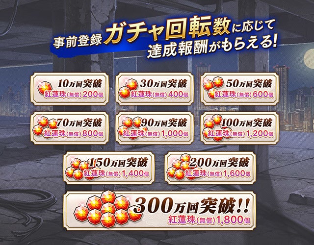 事前登録ガチャの総回転数に応じて、報酬をプレゼントいたします!