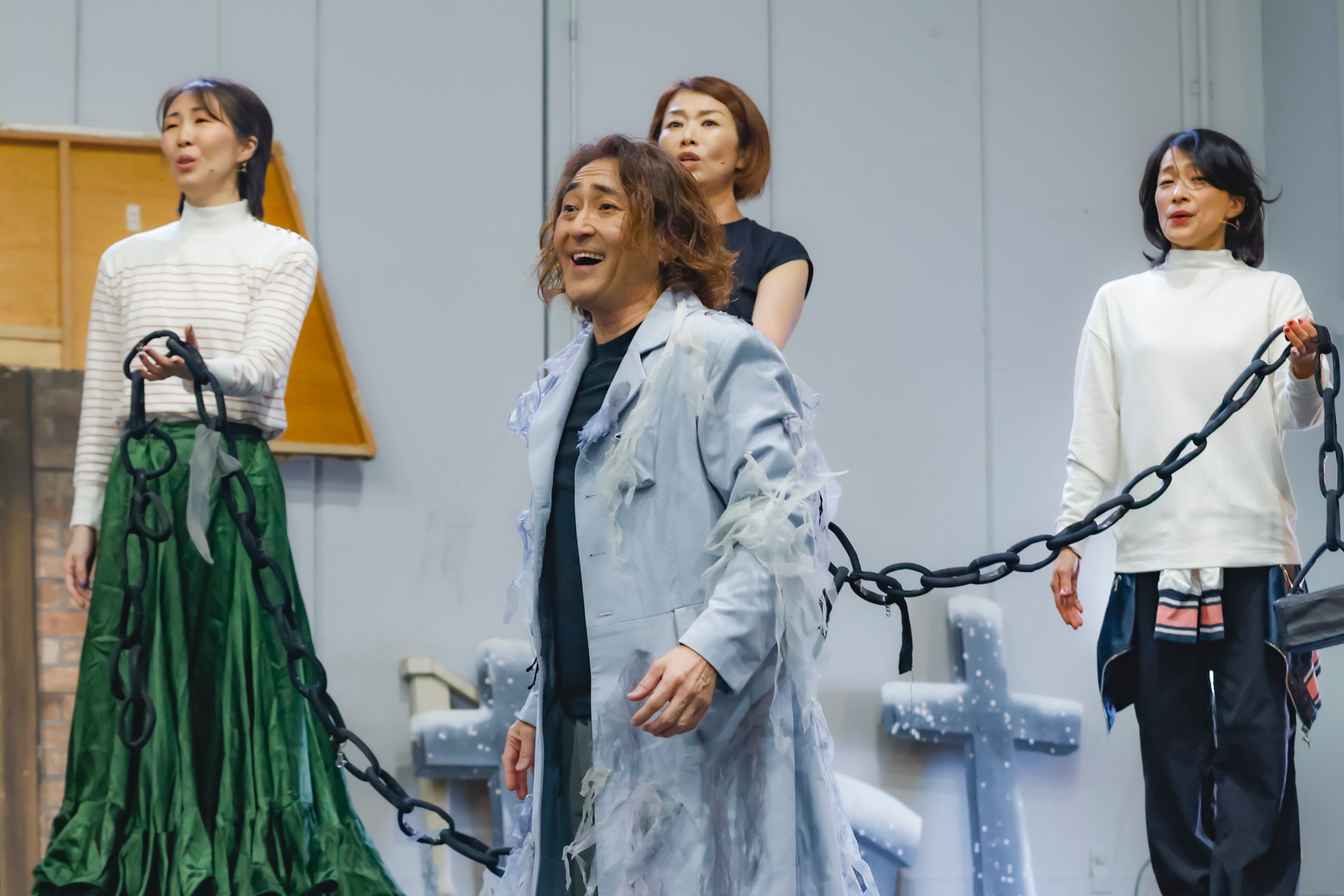 本公演は、チャールズ・ディケンズ原作の同名小説を、西田直木(演出・台本・音楽)がミュージカル化。守銭奴で嫌われ者のスクルージは、クリスマスイブの夜に幽霊となって現れたかつての共同経営者マーレイから「欲に取り憑かれた人間は死後の世界で悲惨な運命を辿る」と宣告される。恐れおののくスクルージ。マーレイは彼を改心させるべく、過去・現在・未来を辿る時間旅行を提案する。クリスマスイブの夜に起きた奇跡を描く、心温まるミュージカルだ。