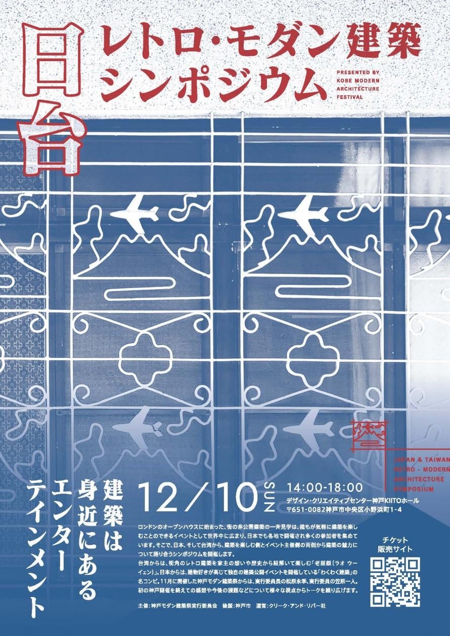 本シンポジウムは、11月24日(金)~26日(日)に神戸モダン建築祭を実施する実行委員が登壇するほか、台湾のレトロ建築を紹介するインフルエンサー「老屋顔(ラオ ウーイェン)」や、建築好きが高じて建築物公開イベントを仕掛ける日本人コンビ「わくわく建築」が登場し、日本と台湾から普段は公開しない建築物(非公開建築)の魅力を語り合う内容となっております。現在チケットを好評発売中です。