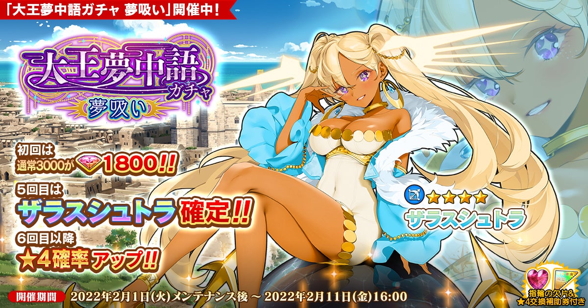 ▼期間限定『大王夢中語ガチャ 夢吸い』を開催中!