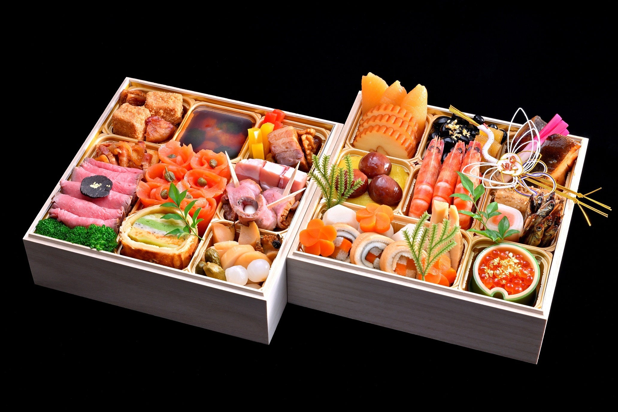 新しい年の幸福を願い、晴れやかな笑顔が集う元旦の祝膳にふさわしい、海の幸、山の幸を贅沢に使用した自慢のおせち料理を、味わい深いお重に仕上げました。日本料理・西洋料理・中国料理の各料理長が食材を厳選し、熟練の技で作る三段重ねの「初かさね」と、縁起が良いといわれる食材をふんだんに使用した日本料理に彩り豊かな西洋料理の二段重ね「和洋二段重」の2種類をご用意しました。また、早期ご予約特典として11月15日(水)までにご予約いただいたお客様には、日本料理 弁慶のランチ「健美御膳」ペア半額券をプレゼントいたします。