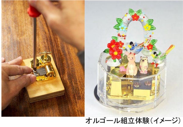 ・オルゴール組立体験参加者にガラス小物1つプレゼント