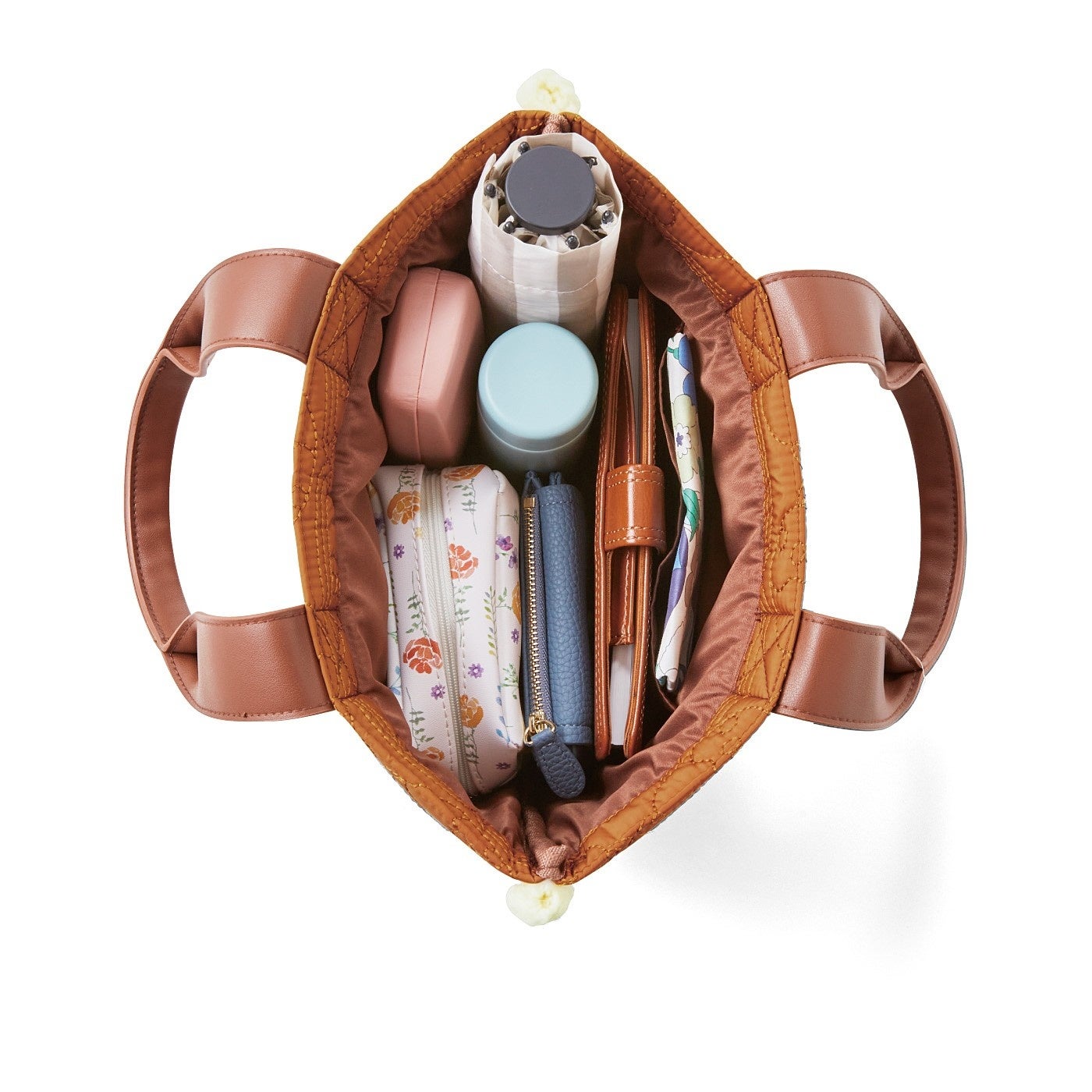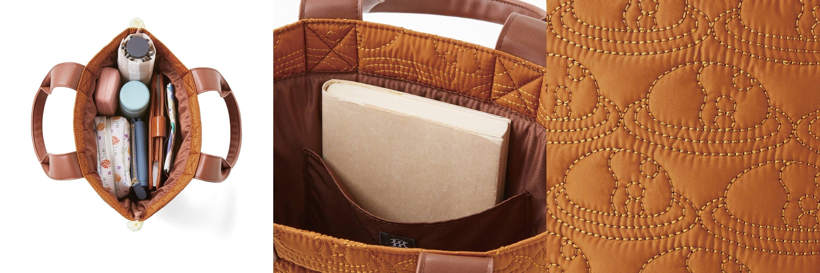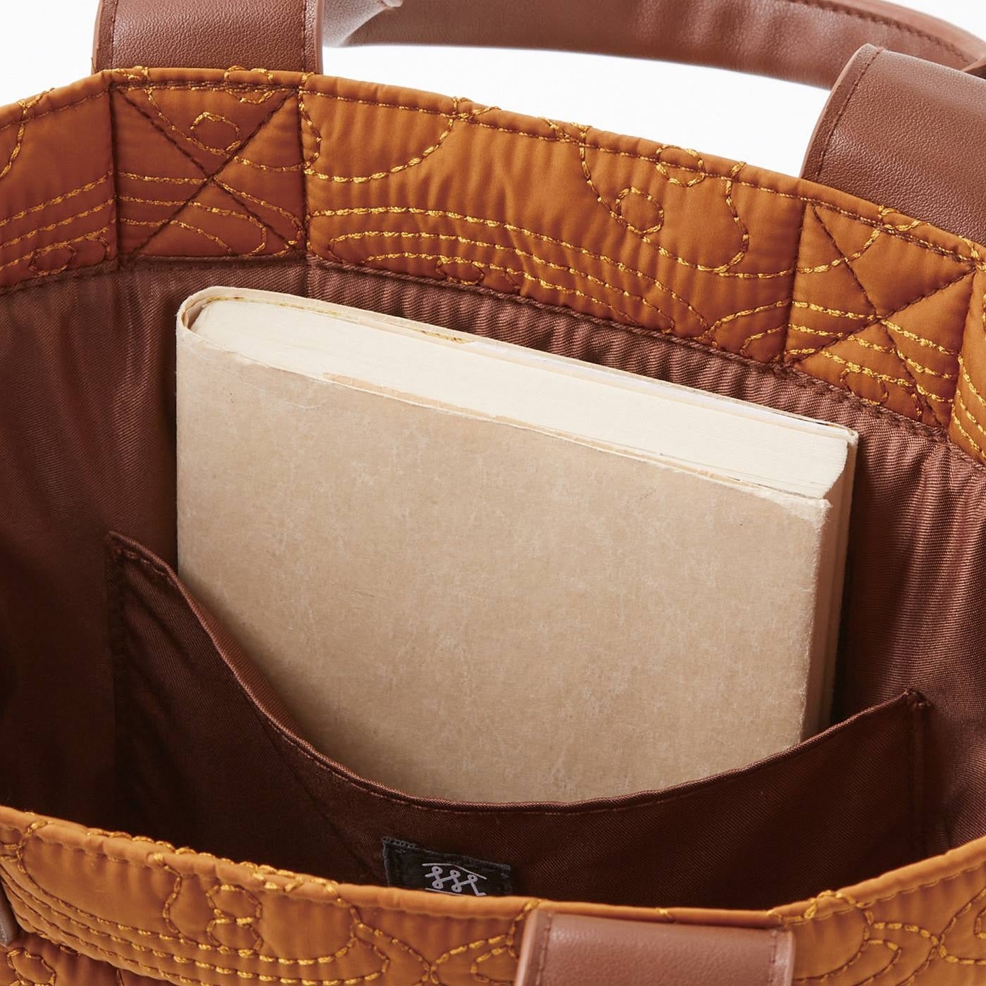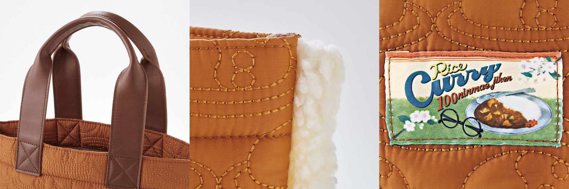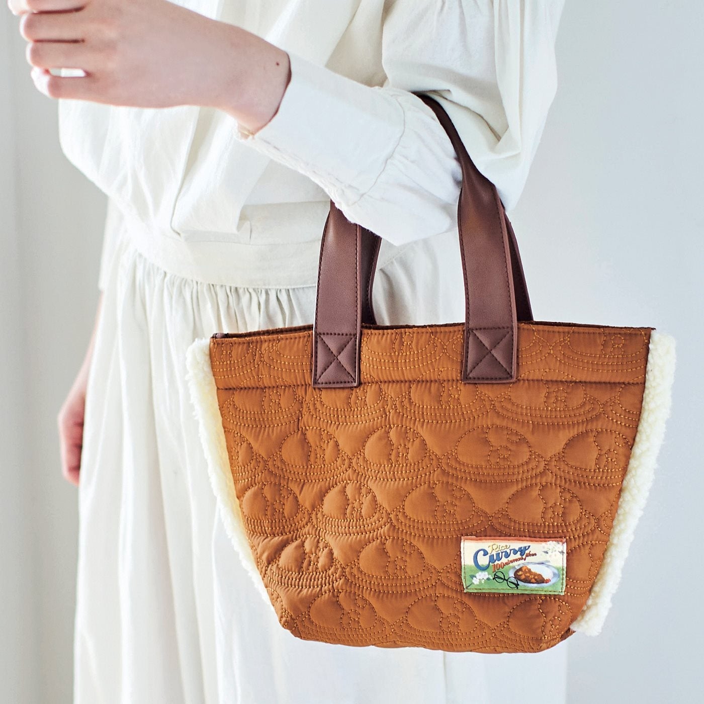 「ちょっとそこまで」のお出かけのおともにぴったりです。お弁当箱や水筒を入れたら、ランチバッグとしても大活躍します。内側のポケットは文庫本が1冊入る大きさなので、お気に入りの作品と一緒にお出かけすることもできます。カレーライスデザインのキルティングは、ほかにはない唯一無二のかわいさです。