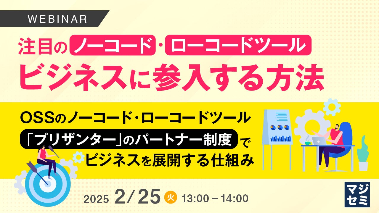 マジセミ株式会社は「注目のノーコード・ローコードツールビジネスに参入する方法」というテーマのウェビナーを開催します。