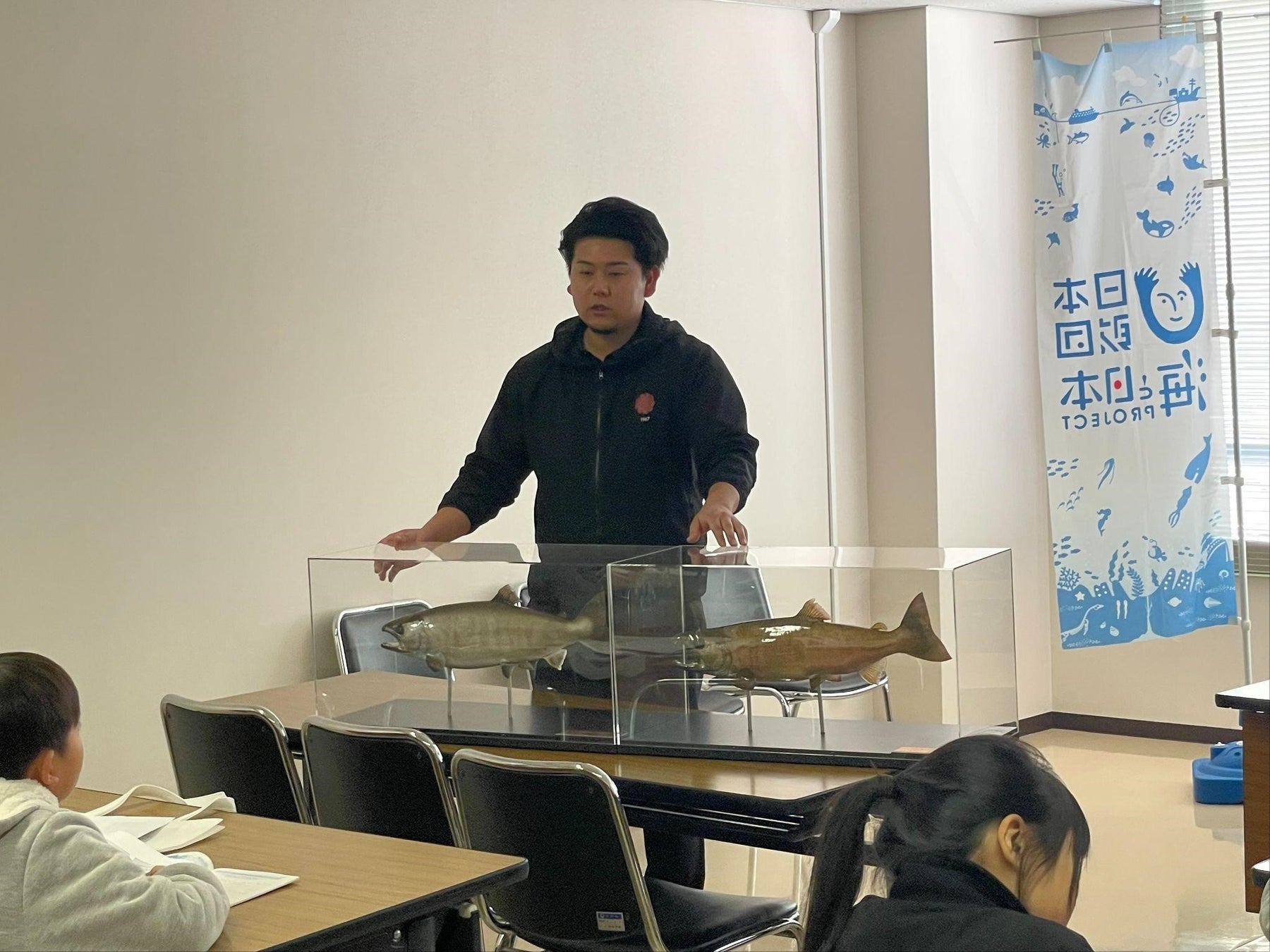 ②射水市で行われている養殖事業・いみずサクラマスについて学習