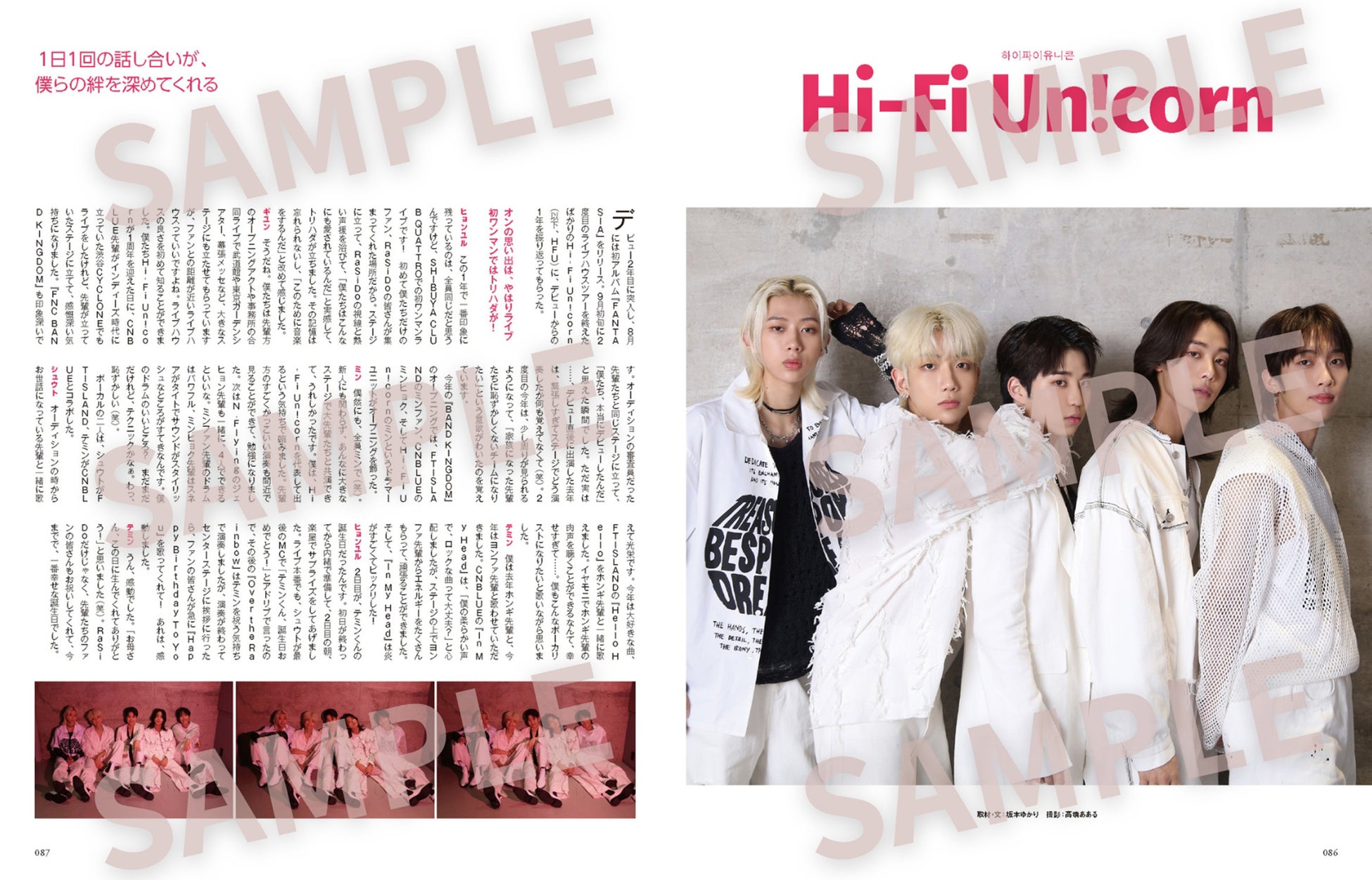 巻末にはデビュー2年目に突入し、8月には1stアルバム『FANTASIA』をリリースしたHi-Fi Un!corn(ハイファイユニコーン)が登場。たくさんの経験をしたデビューからの1年を振り返ってもらったほか、アルバム発売のうれしい気持ちをイラストで表現してもらいました。個性豊かなイラストは必見です!