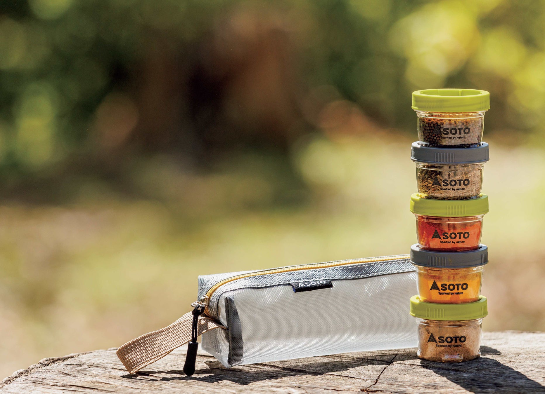 キャンプ料理では塩に砂糖、コショウにハーブ、鷹の爪…と調味料はそれなりに揃えたい。家にある調味料を少しずつこのケースに入れて持っていけば、新たに買う必要もなくてお得ですよ!