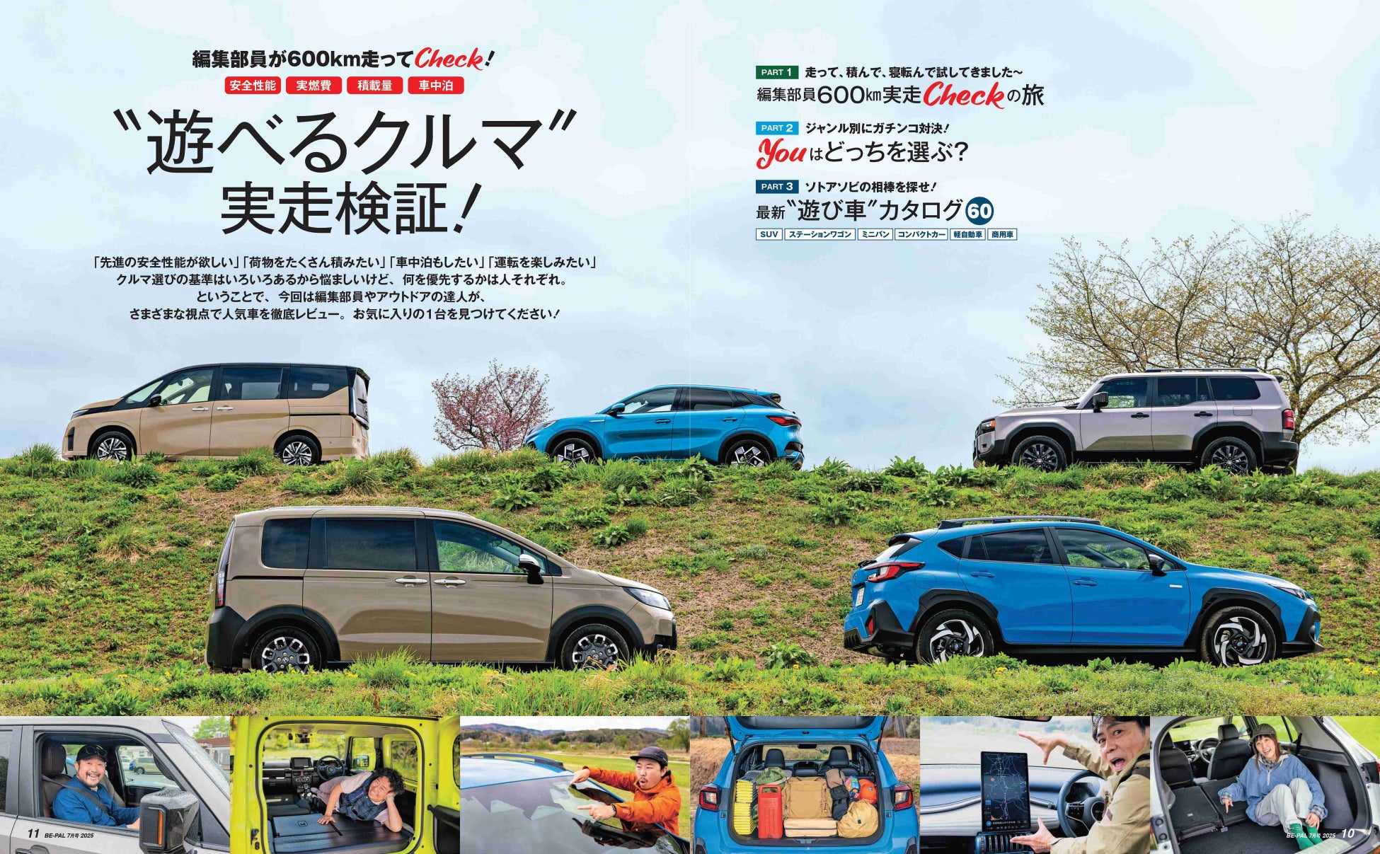 さらに、今号の大特集は「“遊べるクルマ” 実走検証!」。ビーパル編集部員が600kmを走って、燃費に安全性能、荷室の使いやすさに運転の快適度などなどを多面的にチェック。さらに、ミニバンにステーションワゴン、SUVにEV、軽自動車まで網羅した最新遊びクルマカタログ60車種を徹底取材。今欲しいからいつか欲しいも含め、未来の相棒がここにいます!