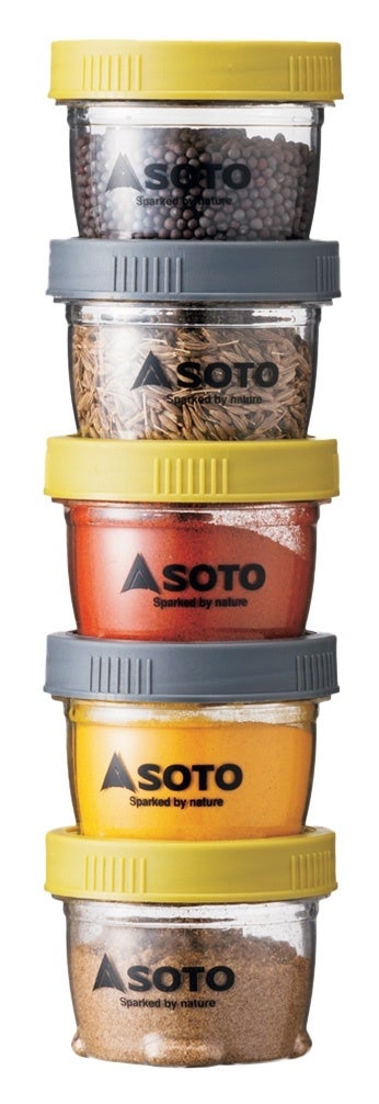 『SOTO最強マルチ5連ケース』がBE-PAL最新号の特別付録に登場! 料理のスパイス入れ、ピルケース、文具入れ… フタ付きで小分けにできるスグレモノ!!