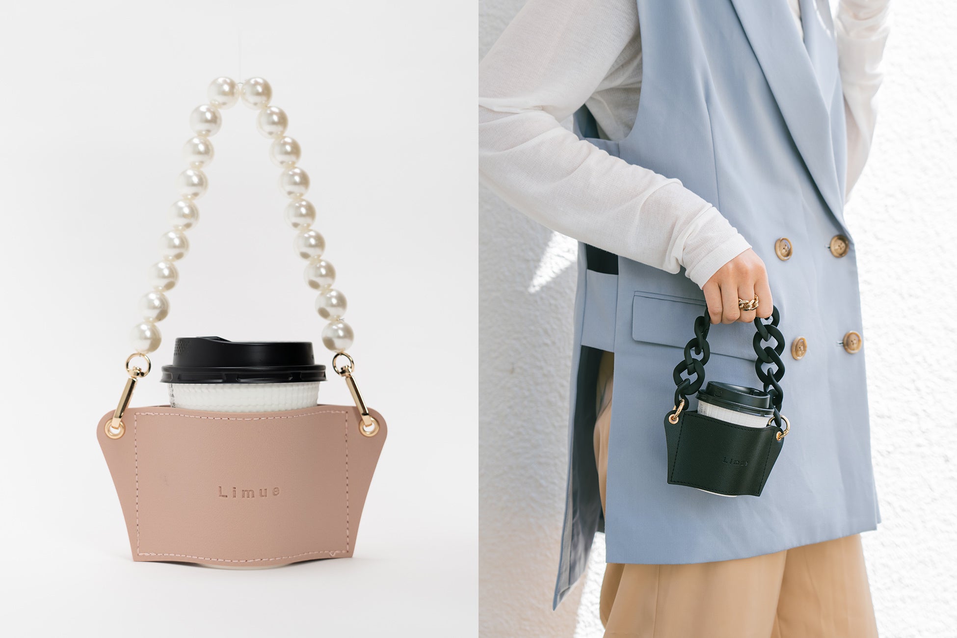税込¥11,000以上お買い上げいただいたお客さまに先着で、SNS映え抜群の「Limue」オリジナルタンブラースリーブをプレゼント!色やパール、チェーンが違う全11種類を用意しており、好きなデザインをお選びいただけます!