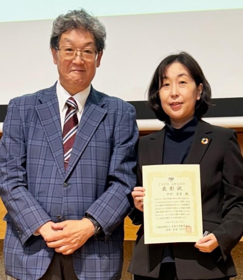 中村技術専門職員は、工学教育の発展および国際連携の推進において長年尽力しており、国際連携セミナーの主催や国内外での学会発表・学会誌への投稿などの活動が評価されました。これまでにも、「化学コミュニケーション賞2022(個人)」、「日本工学教育協会 中国・四国工学教育協会賞」、「第10回女性技術者育成功労賞」などを受賞しており、今回の受賞は、こうした継続的な取り組みに対する高い評価と、今後のさらなる活躍への期待を示すものです。