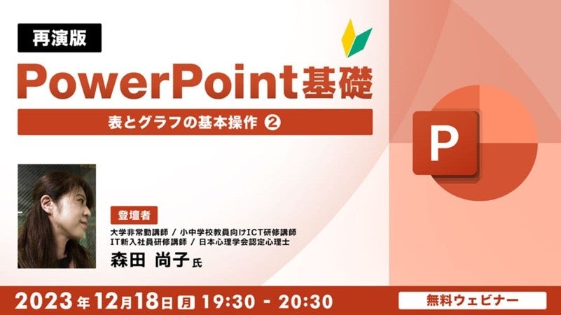 パワポの表とグラフの基本操作を学ぶ!12/18(月)無料セミナー「【再演】全10回で学ぶ PowerPoint基礎 Vol.8 ~表とグラフの基本操作(2)~」