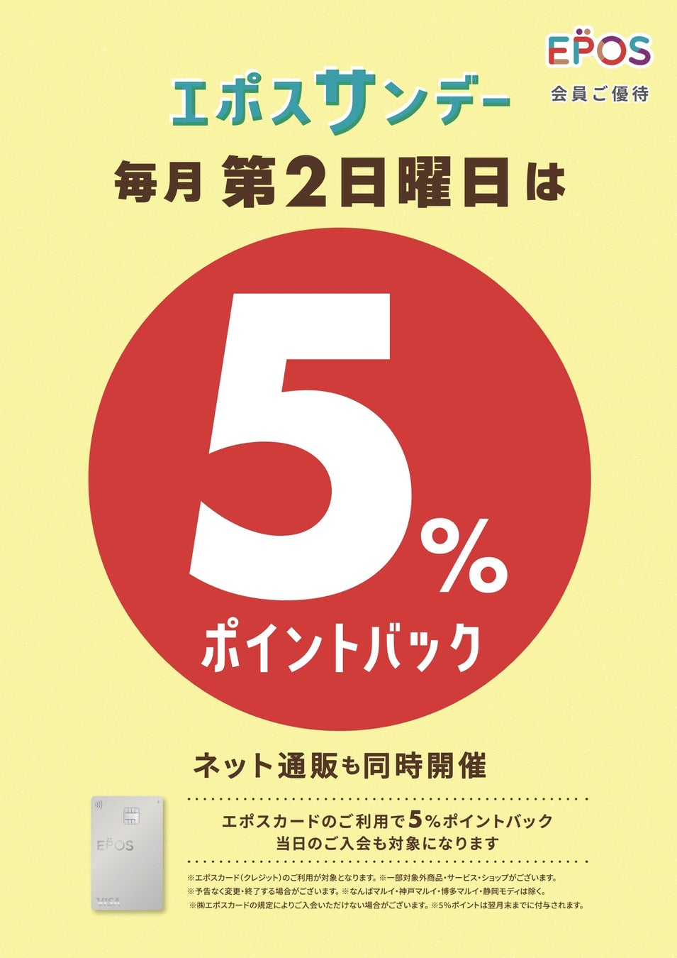 5%ポイントバック!毎月第2日曜日は『エポスサンデー』
