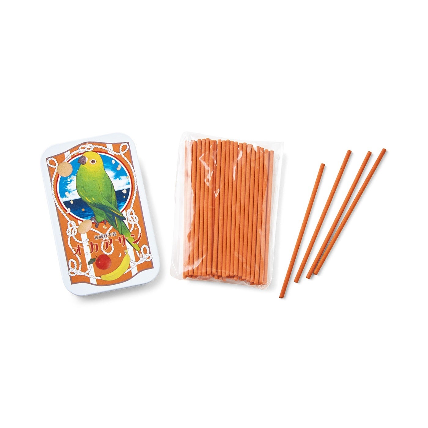1回のお届け例です。50本(1本の燃焼時間:約10分)のお香が、特製デザインのスライド缶に入って届きます。