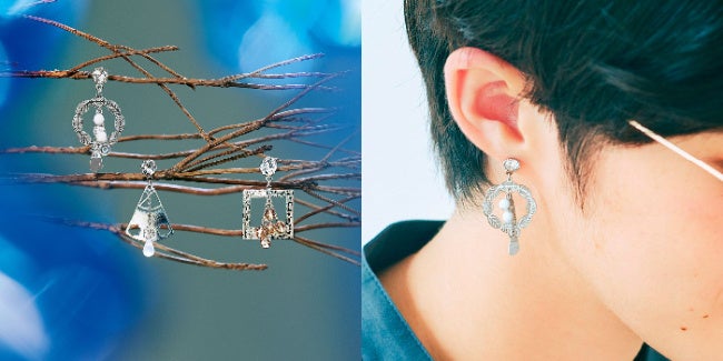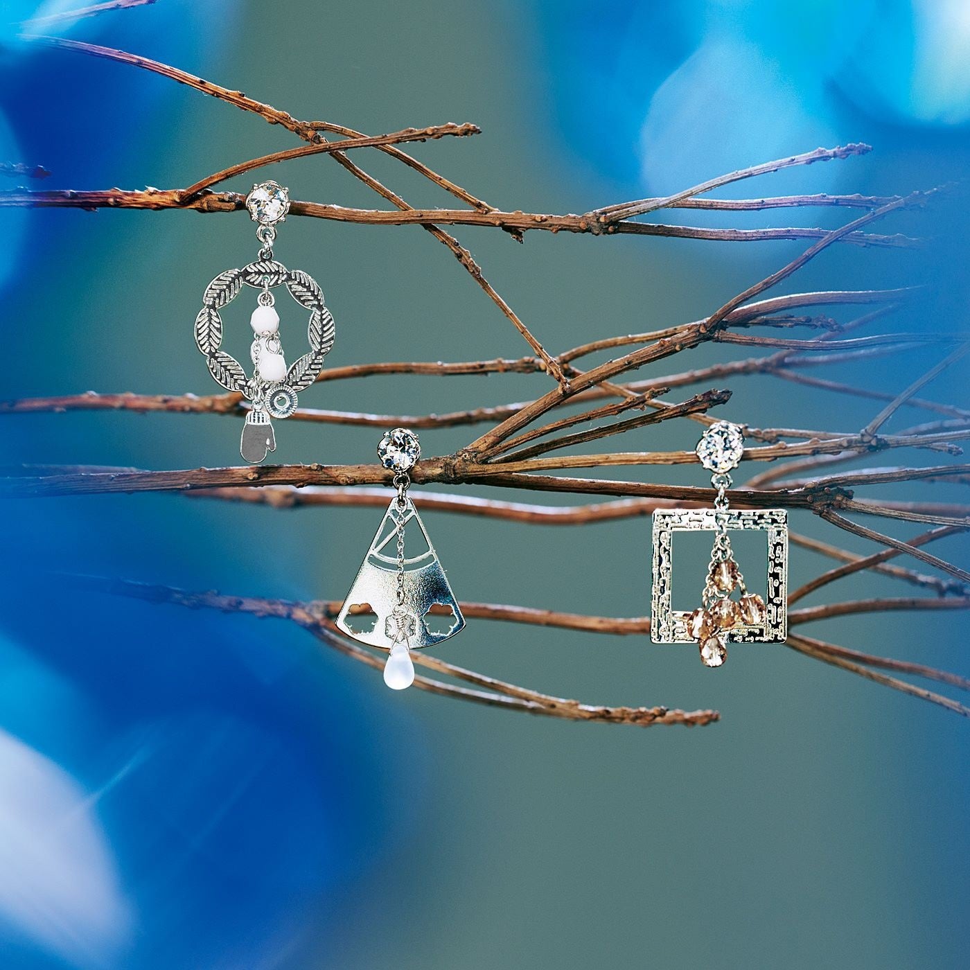 冬を舞台にしたお話をイメージした、揺れるパーツがちりりと清涼な音を奏でるイヤアクセサリーです。