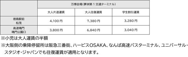 徳島バスの高速バス「徳島大阪線」徳島から大阪・関西万博会場までの直通便を運行します