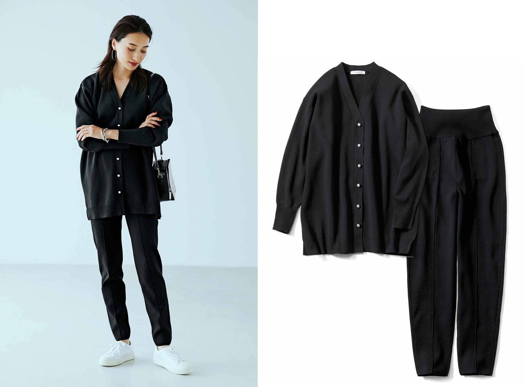 スタイリスト福田麻琴さんとの新作コラボで秋の着こなし提案「バウンドニットのパンツセットアップ〈ブラック〉」がフェリシモ「IEDIT[イディット]」から登場