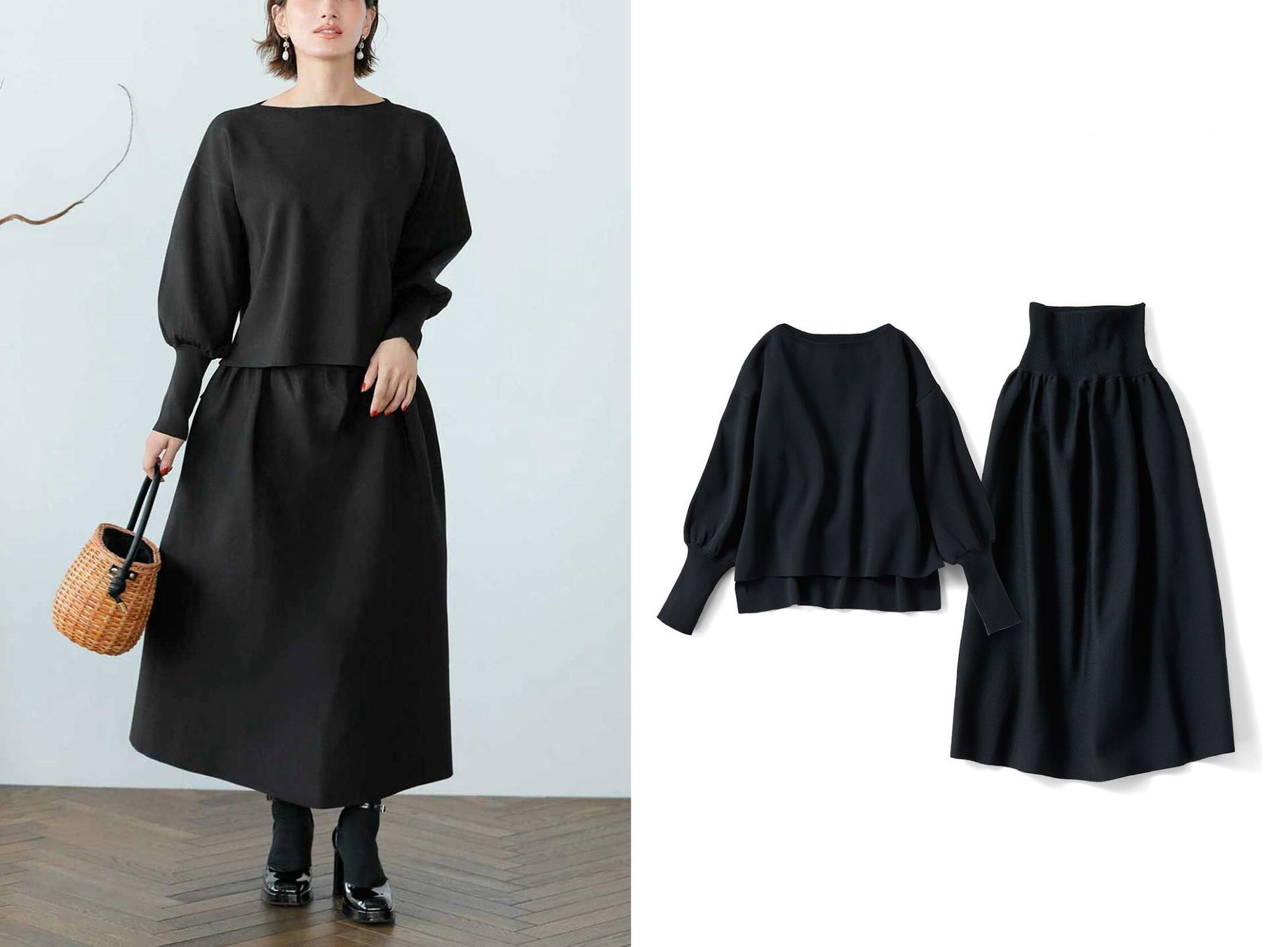 IEDIT[イディット] 福田麻琴さんコラボ バウンドニットのスカートセットアップ〈ブラック〉