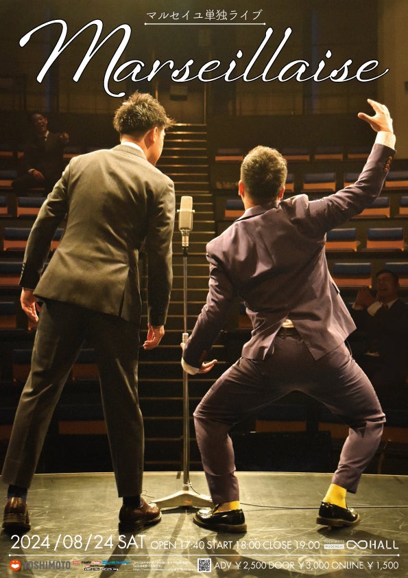 このたび、8月24日(土)に吉本興業所属・マルセイユがヨシモト∞ホールにて『マルセイユ単独ライブ「Marseillaise」(読み:マルセイエーズ)』を開催いたします。昨年4月に大阪より東京に進出し、ヨシモト∞ホールのレギュラーメンバーとして活動しているマルセイユ。昨年12月に開催した東京進出後初の単独ライブでは、コンビ結成10周年記念の集大成を新ネタ漫才とともにお届けしました。今回も、よりパワーアップした2人が織りなすテンポの良い漫才に、惹き込まれること間違いなしの内容となっております。
