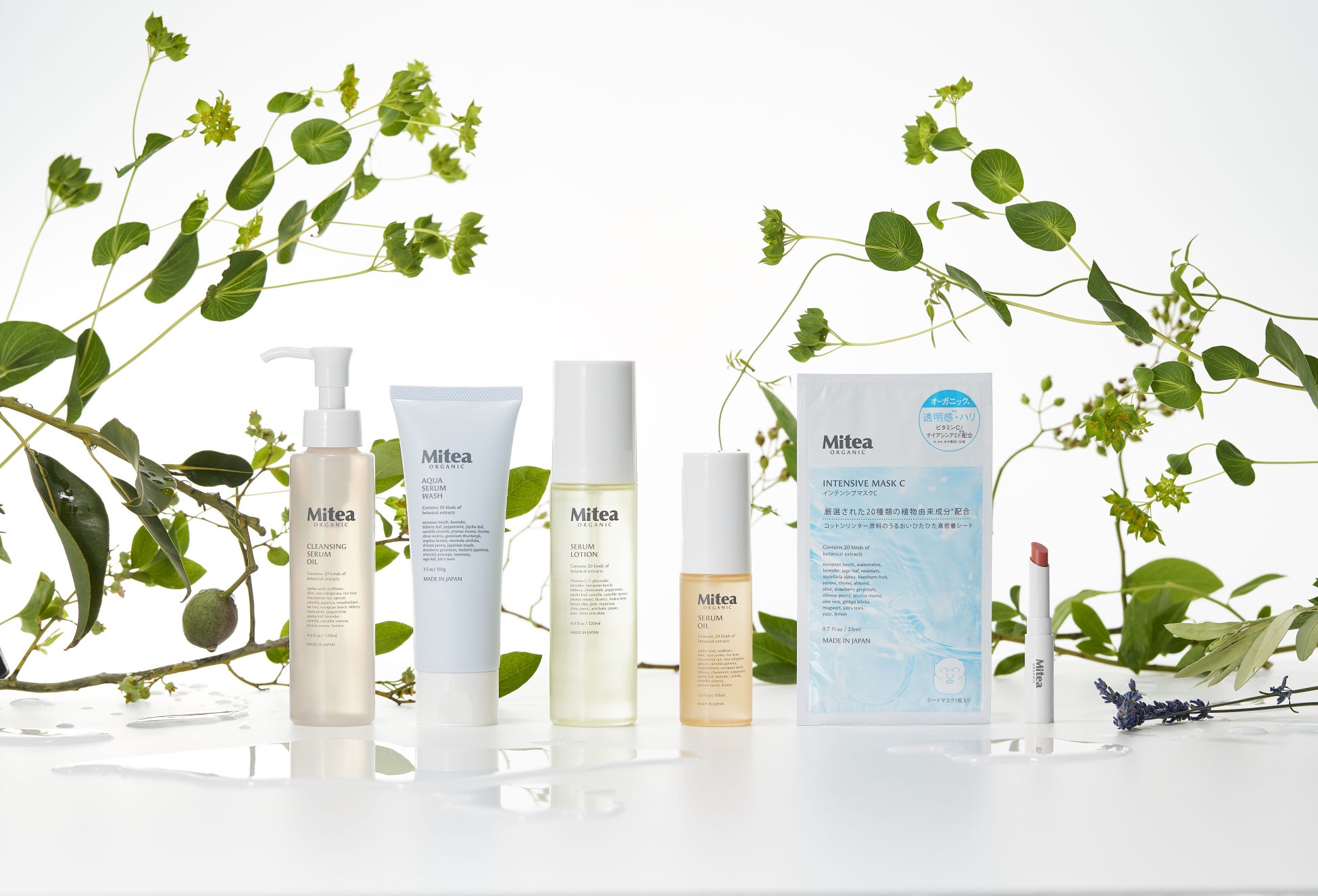Mitea ORGANICこだわりの植物エキスが乾いた肌をみずみずしく満たしながら、暑さによるに不快なにおいや汗、べたつきもすっきりクリアに導き、清々しく快適な毎日をサポートします。
