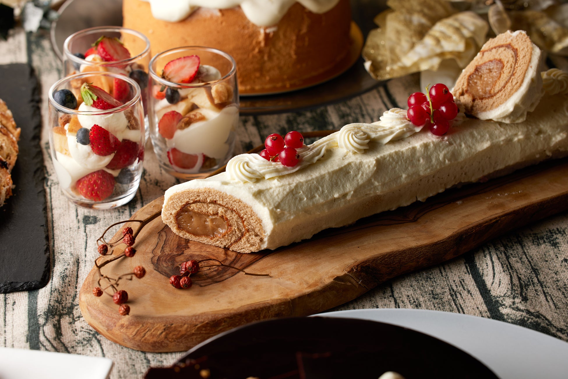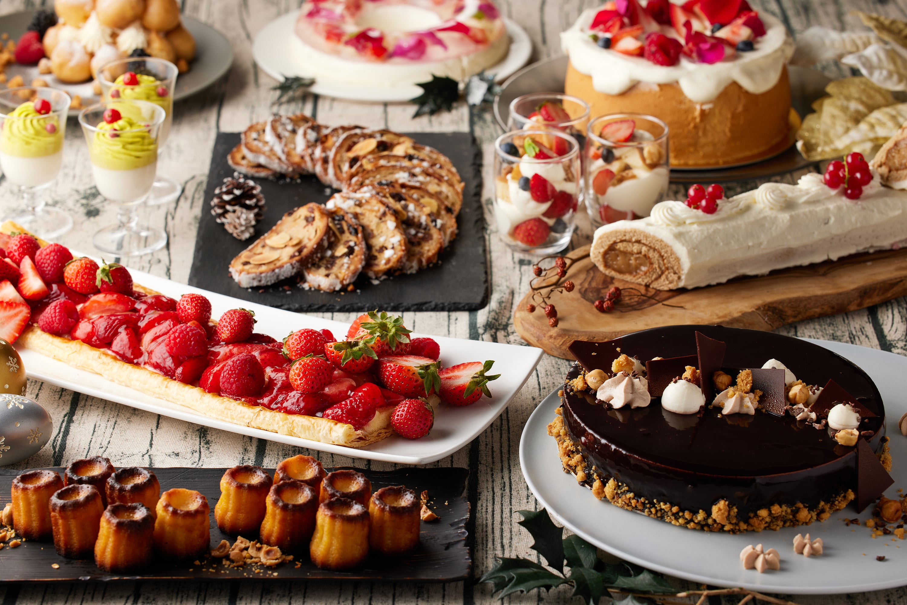 クリスマスの大定番“ブッシュ・ド・ノエル”や“ショートケーキ”など華やかなデザートブッフェと、お好みのメニューを組み合わせて楽しむ