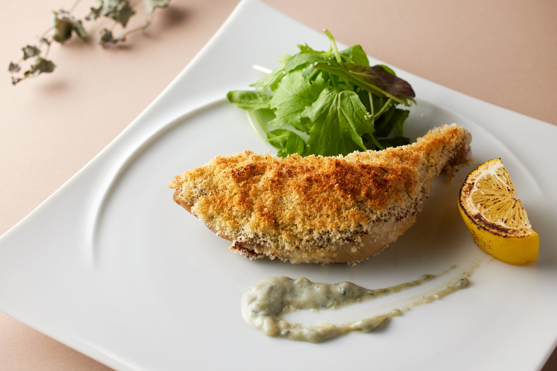 ・カマスのヘーゼルナッツ入りパン粉焼 タプナードソース