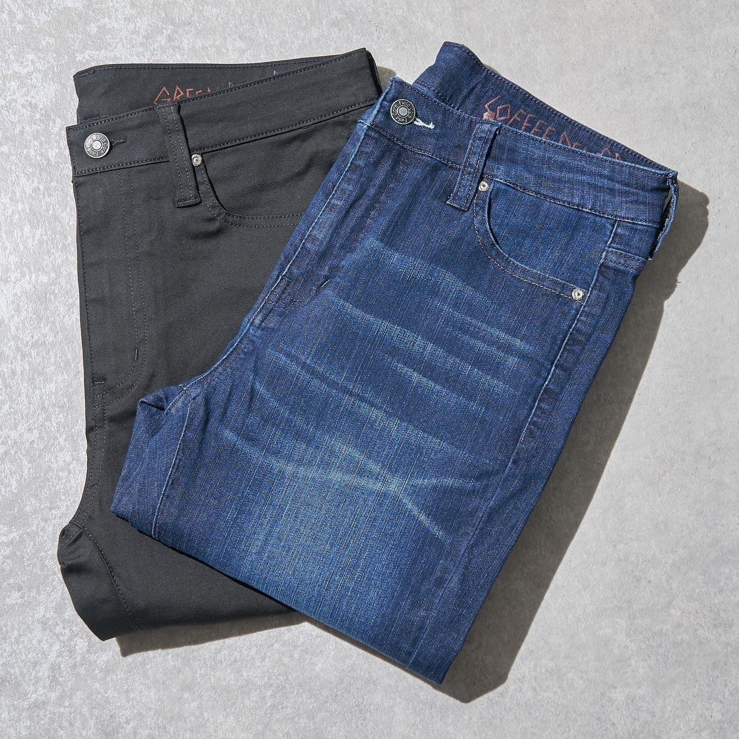 廃棄されるコーヒーかすを再利用した繊維「S.cofe®」を使用したデニムパンツ。伸縮性も高いので履き心地のいいスキニーになっています。ブラックは農薬や水の使用を減らした「BCIコットン」を採用したサステナブル素材です。